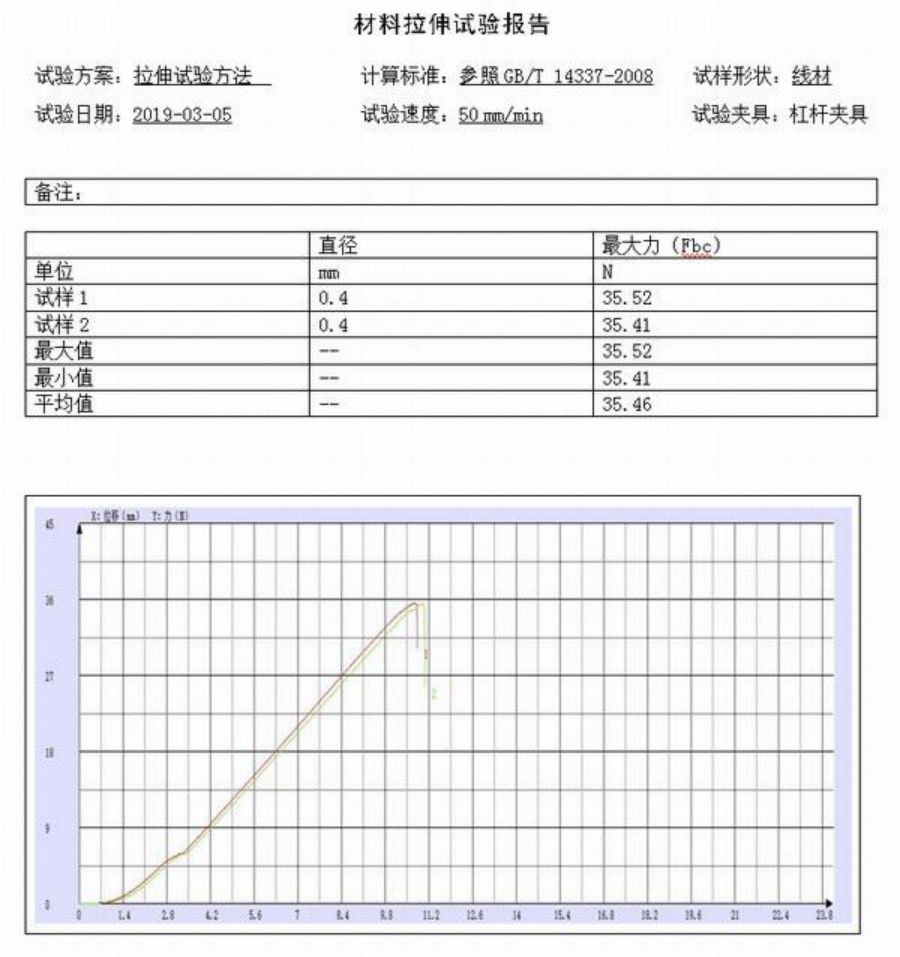 试验报告要求:纸板样要求最大力(200多N),弹性模量(50mm标距变形量大概0.5mm),线样品只要求测量最大力,测试曲线。