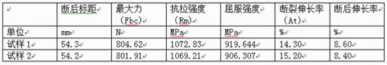 求取参数:抗拉强度(Rm)、屈服强度、断裂伸长率(At)、断后伸长率