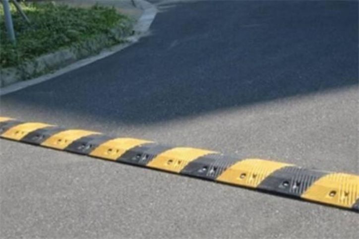 减震带是安装在公路上使经过的车辆减速的交通设施,形状一般为条状,也有点状的,材质主要是橡胶,橡胶减速带根据车行驶中轮胎与地面特殊橡胶的角度原理设计,用特殊橡胶制成,一般以黄色黑色相间以引起视觉注意,使路面稍微拱起以达到车辆减速目的,汽车在行驶中既安全又起到缓冲减速目的,提高交通道口的安全。