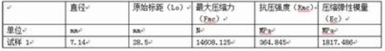 求取参数:最大压缩力、抗压强度、压缩弹性模量