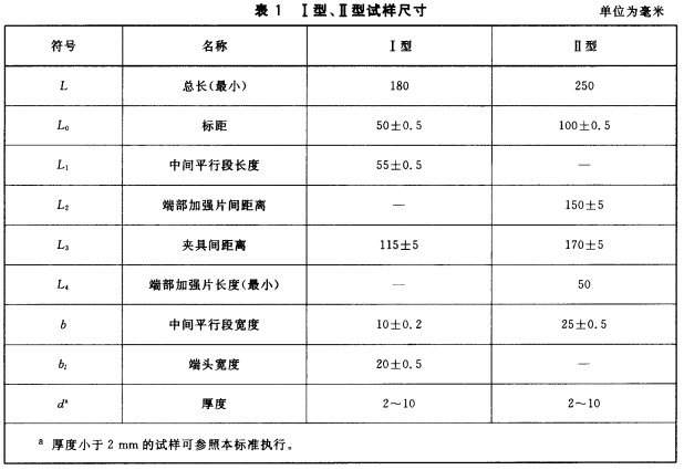 1.2 Ⅰ型试样适用于纤维增强热塑性和热固性塑料板材;Ⅱ型试样适用于纤维增强热固性塑料板材。Ⅰ、Ⅱ型仲裁试样的厚度为4mm。