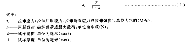 1、 拉伸应力(拉伸屈服应力、拉伸断裂应力或拉伸强度)按式(1)计算: