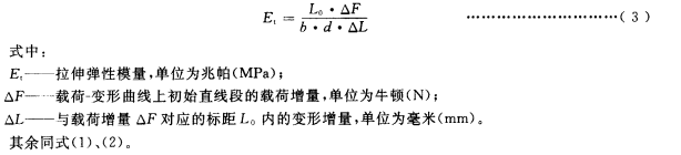 3、 拉伸弹性模量采用分级加载时按式(3)计算: