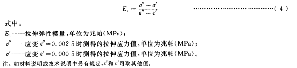 4、 采用自动记录装置测定时,对于给定的应变εm=0.0025和ε'=0.0005,拉伸弹性模量按式(4)计算: