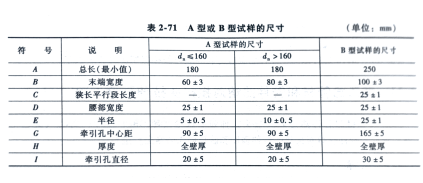 1)对于壁厚<25mm 的管材,选用A型试样,如图2-124和表2-71所示。