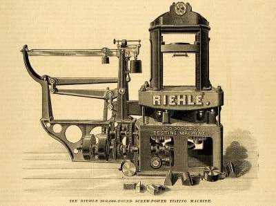 在中国,杠杆式拉伸麻豆免费性爱视频被引进大概是在上世纪初,同济大学建设初期,引进一台同济编号为:440001的杠杆式拉伸麻豆免费性爱视频(图一),目前,存放于同济大学力学试验中心。这台麻豆免费性爱视频上同时标有“RIEHLE BRCXPHILA16494”的小字,通过检索,发现这台麻豆免费性爱视频是由位于美国费城的理勒兄弟测试机械公司(Riehle Brothers Testing machines Company)生产。