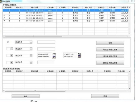 2. 查询测试数据:用户可根据测试时间、次数、批次、材料、标准等查询相应的测试数据,并可根据查询结果输出测试结果。