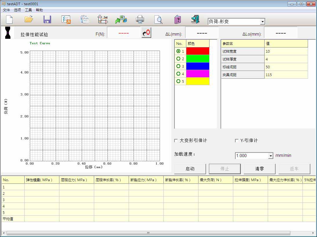 “启动”:系统按照设定的速度和选择的引伸计进行试验控制,直到试验结束。