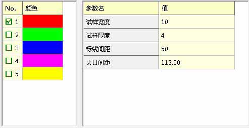 常规参数设置区如图所示:软件程序自动调出最后一次保存的参数,并填写到列表中。自动计算试验编号,用户填写完成所有的参数后单击确定按钮,进入试验界面。注意:若试样个数不是 5 个,请将试样个数填到编辑框中。