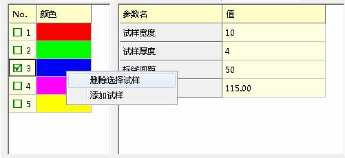 单击要编辑的试样序号,然后在列表中直接修改试样参数值,如果麻豆激情视频要删除某一个试样,首先选中该试样,然后单击鼠标右键,然后选择“删除选择试样”即可;添加试样可通过右键菜单中的“添加试样”实现。