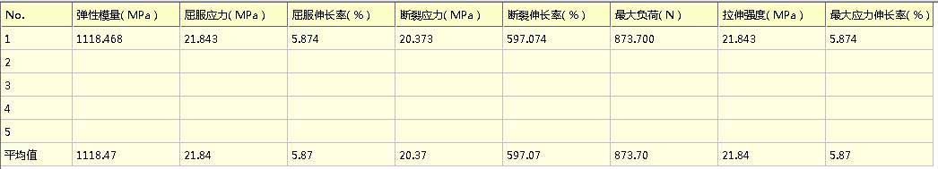 试验结束后,自动计算试验结果并显示在如下图所示列表中: