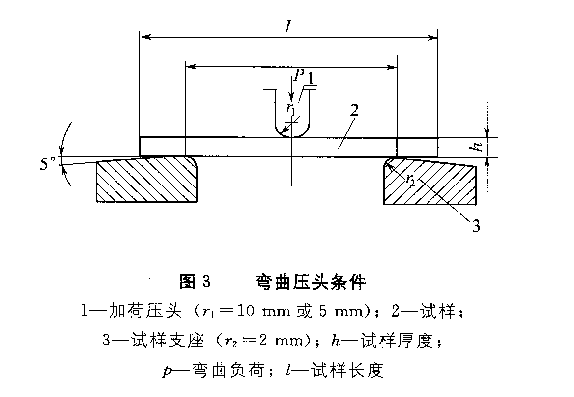 试验时将一规定形状和尺寸的试样置于两支坐上,并在两支坐的中点施加一集中负荷,使试样产生弯曲应力和变形。这种方法称静态三点式弯曲试验。