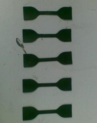 5、从表面光滑平整、无明显气泡的涂膜上按GB/T528规定的哑铃Ⅰ型裁取5试件进行拉伸性能试验。