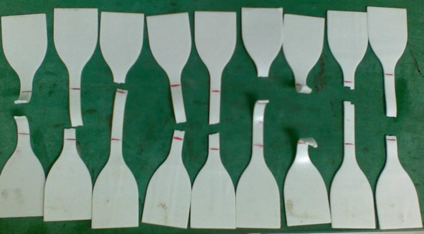 (7)分别计算5个试件的算术平均值作为试验结果 。若试件在标距外断裂,数据作废,用备用试件补测 。