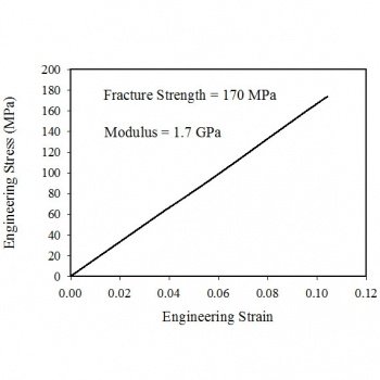 工程应变从零增加到约0.10。工程应力从零到大约170 MPa线性增加,即断裂强度。模量为1.7GPa。