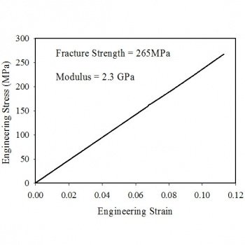 工程应变从零增加到约0.11。工程应力从零增加到大约265 MPa,即断裂强度。模量为2.3GPa。