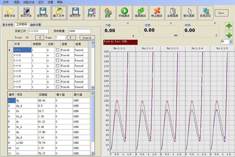 1、Peak Force Return、Force、Distance及Click率等皆可直接在图上显示数值,不须人工计算;