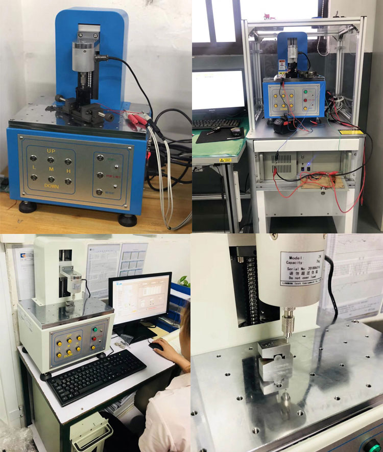 按键荷重位移曲线仪适用于各种RUBBER、金属弹片、按键、开关、计算机键盘、手机按键等作[荷重-行程]曲线测试,同时完成下压力、回弹力测试。采用WINDOWS中文视窗画面设定,操作简单方便,且所有资料皆可储存(试验条件、荷重曲线图、测试结果、检查报表等等);本机采用高精密荷重元测量及伺服电机驱动,可以测得完全精准的[荷重-行程]测试结果,实为各类按键厂商研发、品检必备之检测仪器。