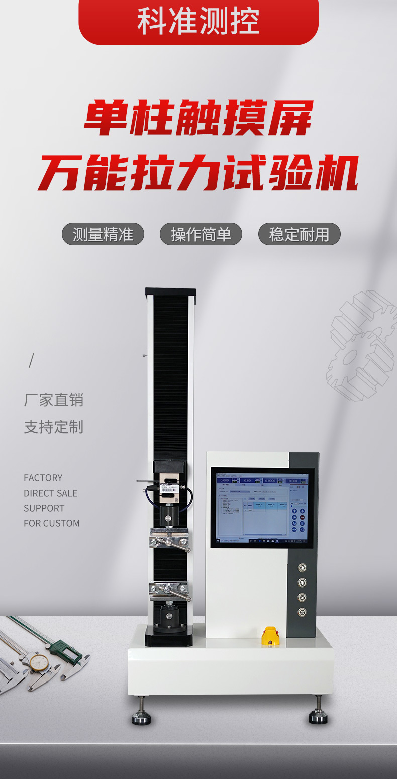 性能 : 采用伺服电机驱动,高精度、无间隙滚珠螺杆及时规皮带作为传动系统,带动横梁上下移动,实现实验加载过程。