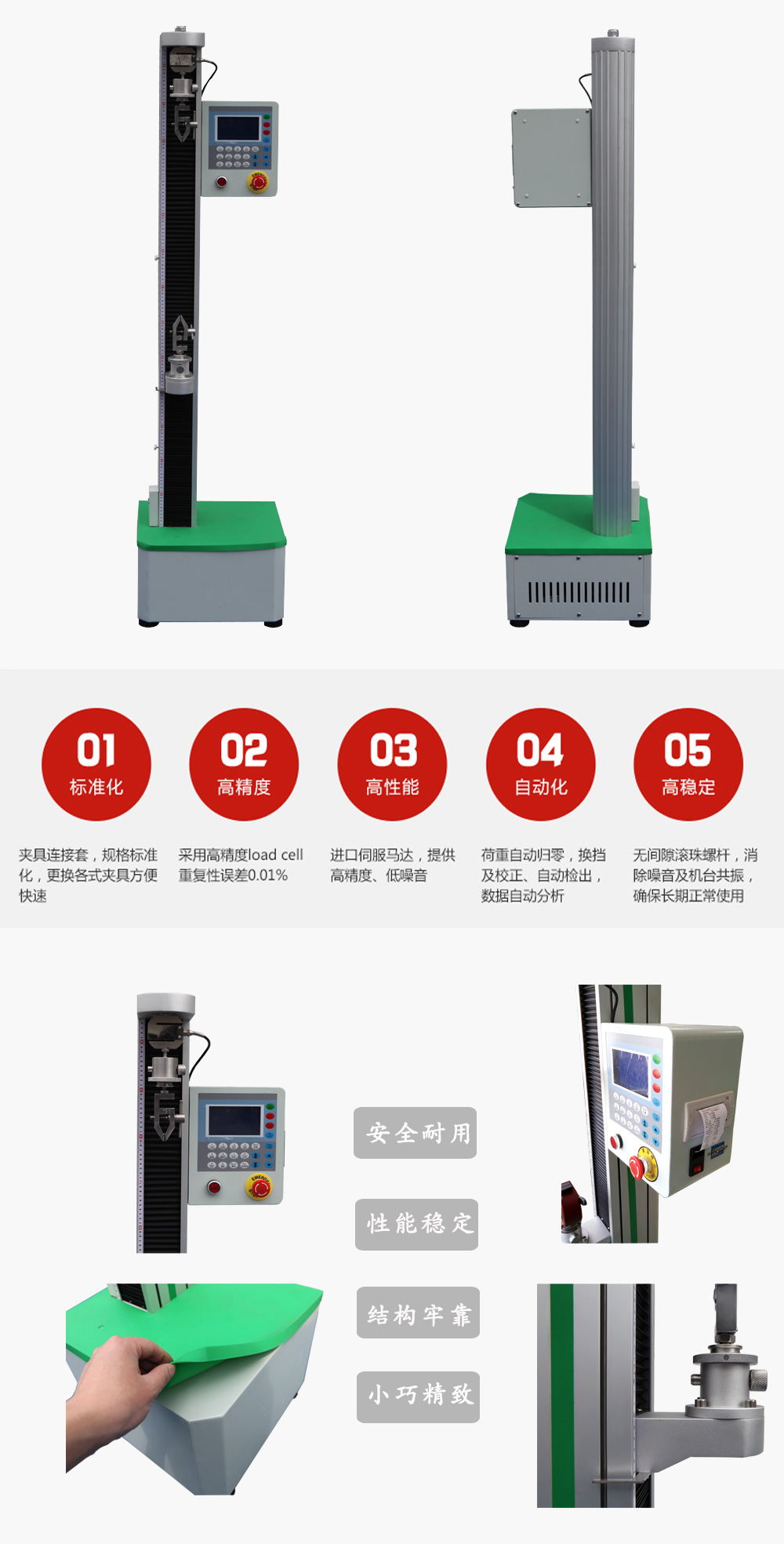 性能 : 采用伺服电机驱动,高精度、无间隙滚珠螺杆及时规皮带作为传动系统,带动横梁上下移动,实现实验加载过程。