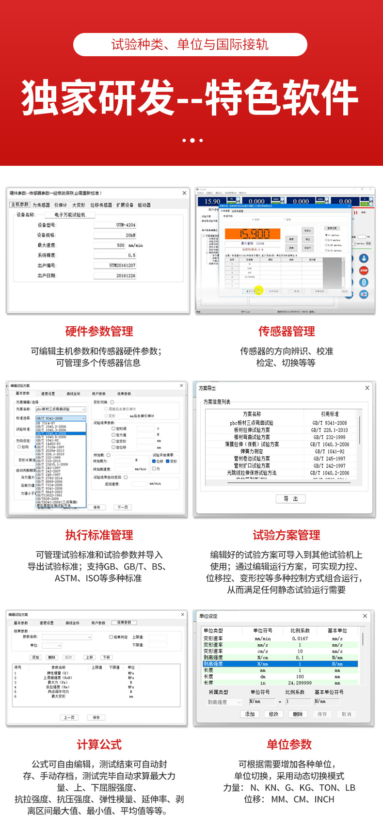 22.软件功能强大:可以满足不同材料的试验,可以同时执行不同的标准,包括国外标准(有多种标准的数据处理功能),单位:N、kN、g、kgf、Ib、cN可以相互转换。完全按试验标准设计的试验软件功能强大。试验曲线可以放大,能清楚的看出数据采集的多少、快慢,曲线的平滑程度,也就能反映出硬件和软件的整体处理能力。