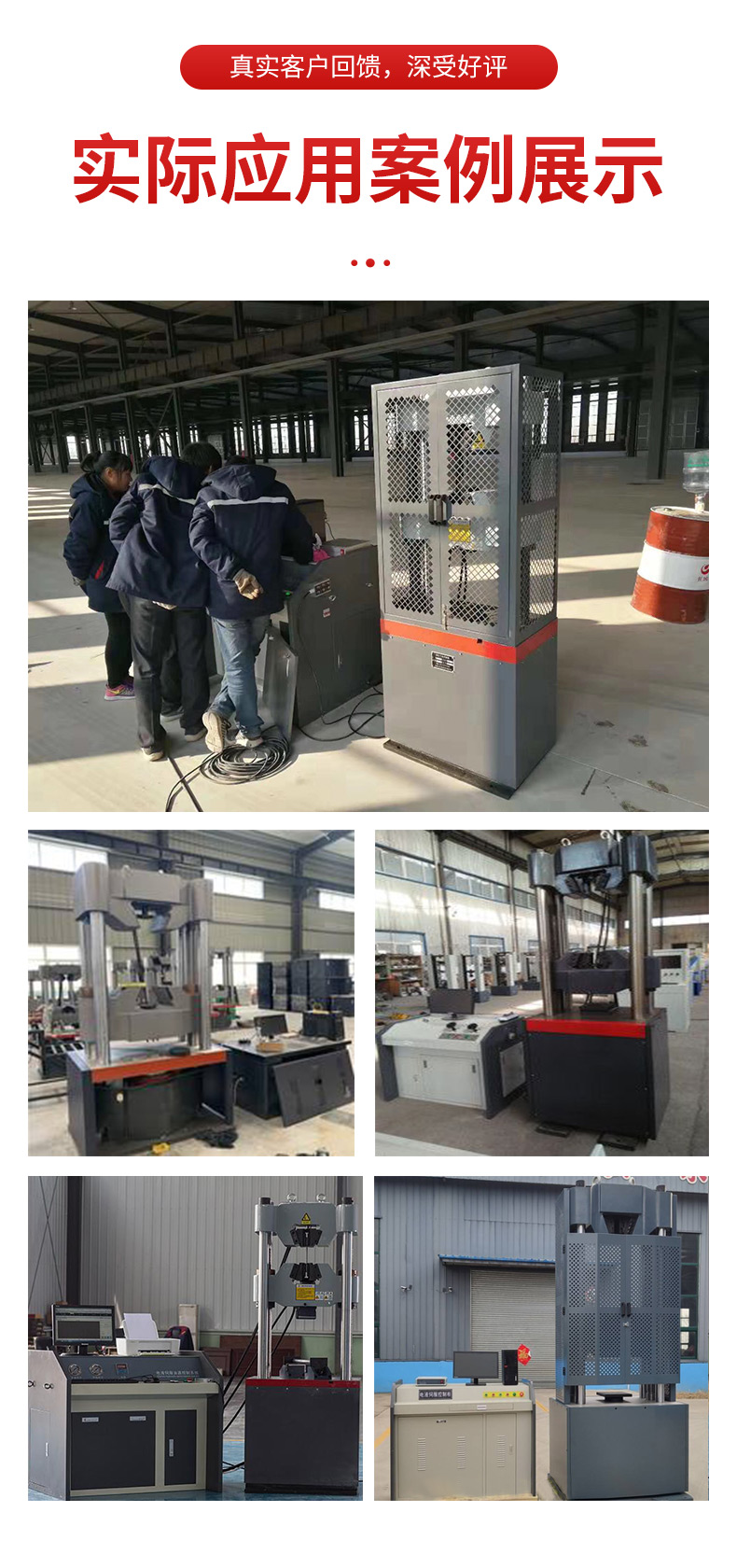 本产品适合材料的拉伸试验,主要侧重于金属棒材、板材的拉伸试验,螺纹钢拉伸试验,钢绞线拉伸试验(需订购相关配件),高强度、高硬度金属材料的拉伸试验。